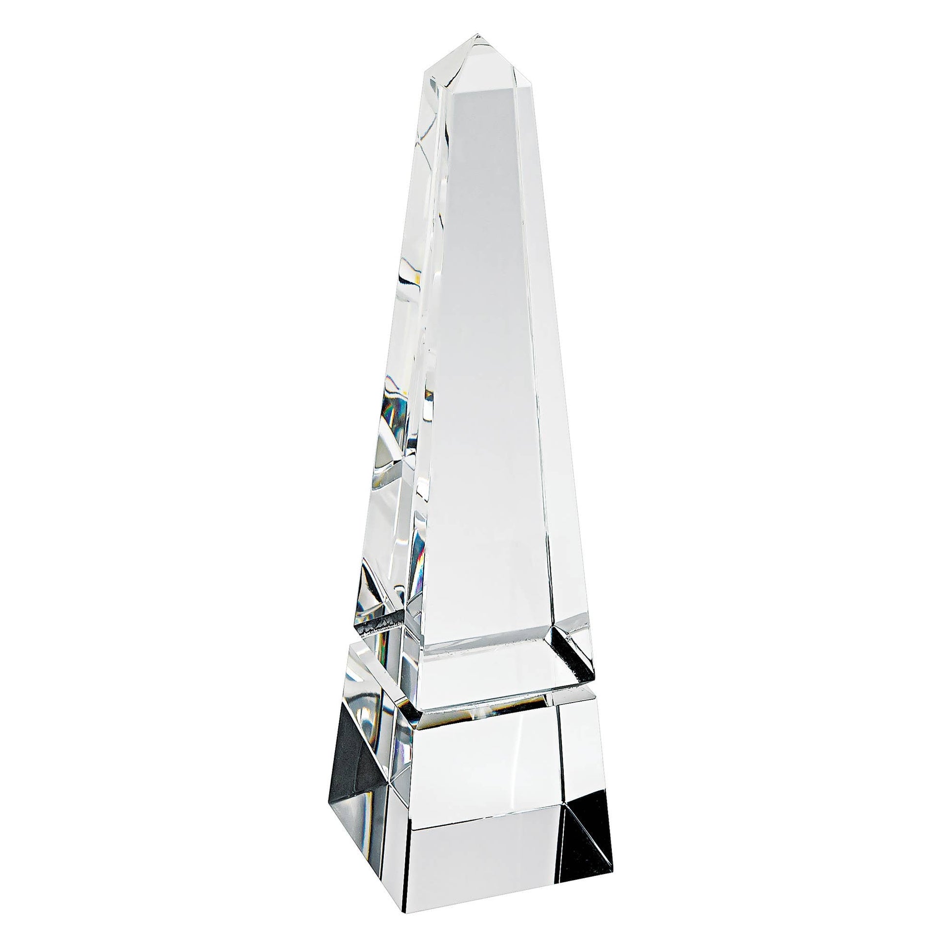 Bring a touch of elegance and style into your home, as well as a display of fashion and beautiful design, with this superb obelisk. Its style will be the ideal augmentation for your rooms, which will make them look imaginative and sophisticated. This obelisk is an excellently crafted piece, made from high quality crystal, which also shows off a and clear color. You want your piece sturdy too, and that’s exactly what you get with this gorgeous obelisk. It's made from all natural, environmentally sustainable, components. As for measurements, they are 12” for height, 2.75” for width, 2.75” for depth, and it weighs 3 pounds. If you want a practical, gorgeous, and long-lasting obelisk, this is the one for you.environmentally sustainable all natural componentsfalselead free crystalperfect choice for decor or awards