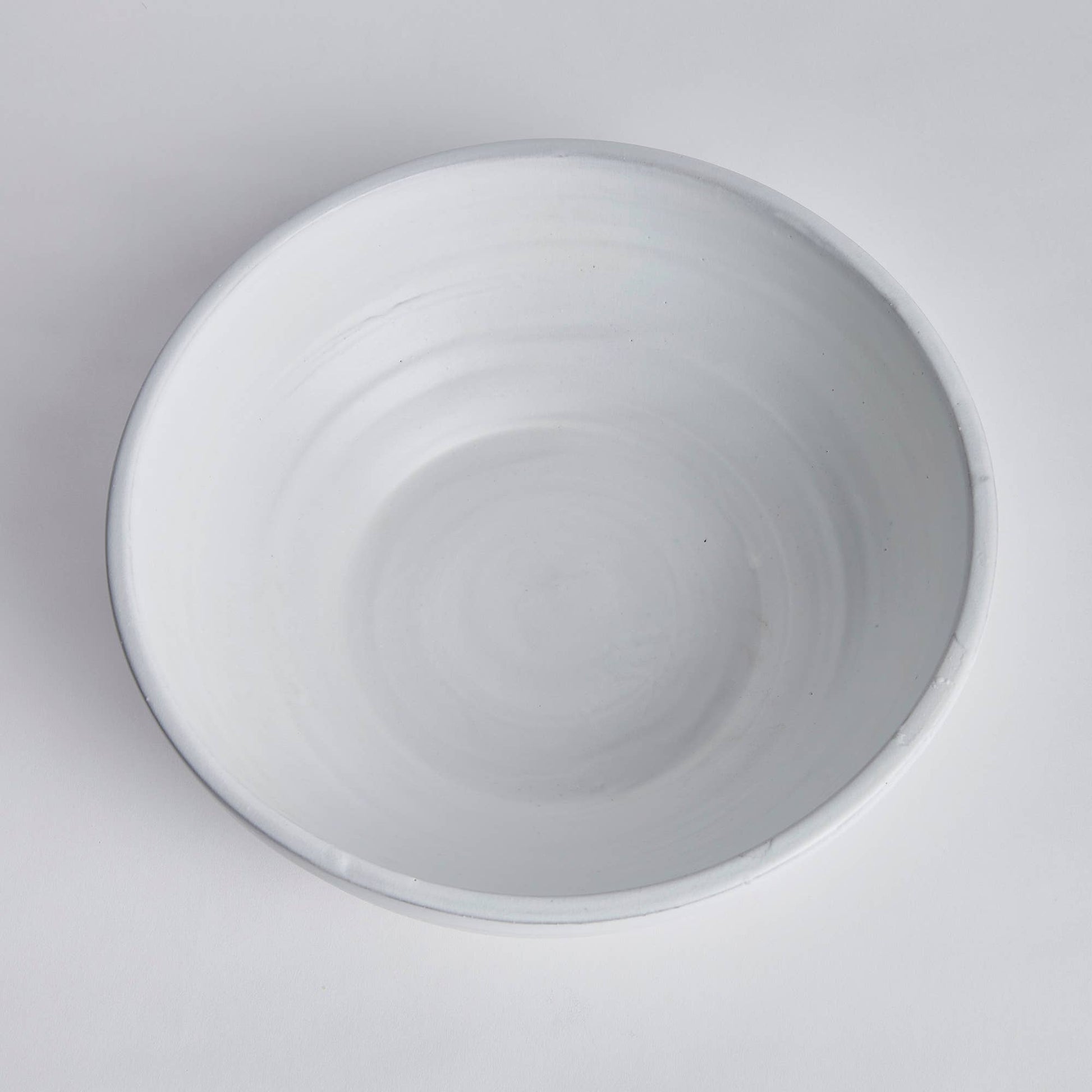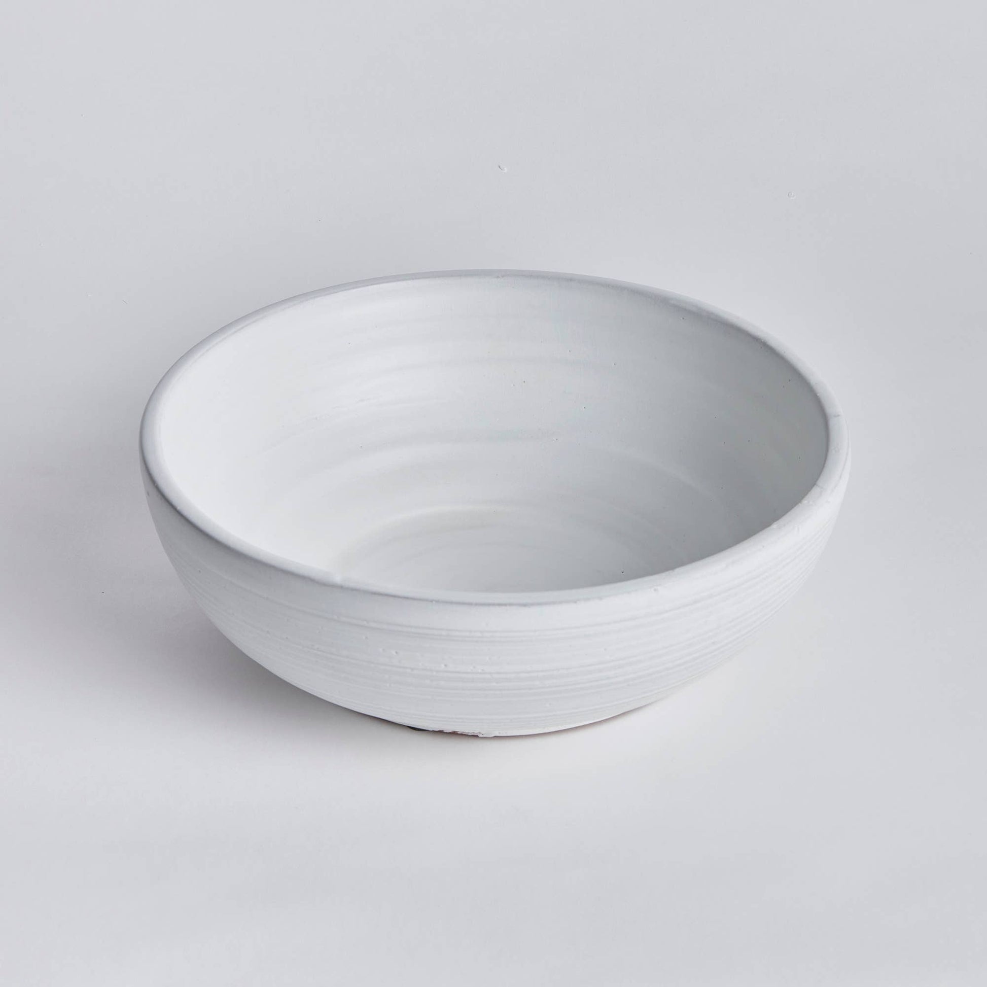 This large scaled bowl is made with a handcrafted look. The imperfect bands and thickly applied glaze give it an artisan's touch. A great centerpiece for dining room table or kitchen island. Handcrafted by skilled artisans, each piece is an original and varies in size and color. Dust with dry cloth. Protect fine furniture by lining the interior of the pottery when necessary. Decorative interior use only.