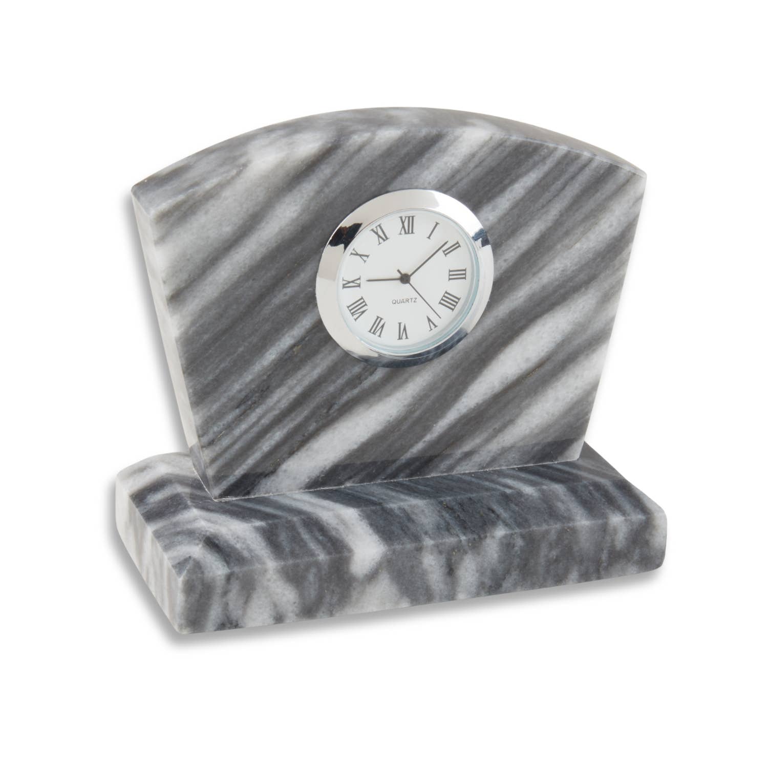 Carefully crafted from genuine marble, each clock boasts its unique veining and patterns, making it a one-of-a-kind masterpiece for your desk or workspace. The subtle yet striking contrast between the marble and gold or silver accents creates a visually captivating aesthetic that exudes luxury and refinement. Designed for both beauty and practicality, this desk clock features precise quartz movement, ensuring accurate timekeeping for years to come.