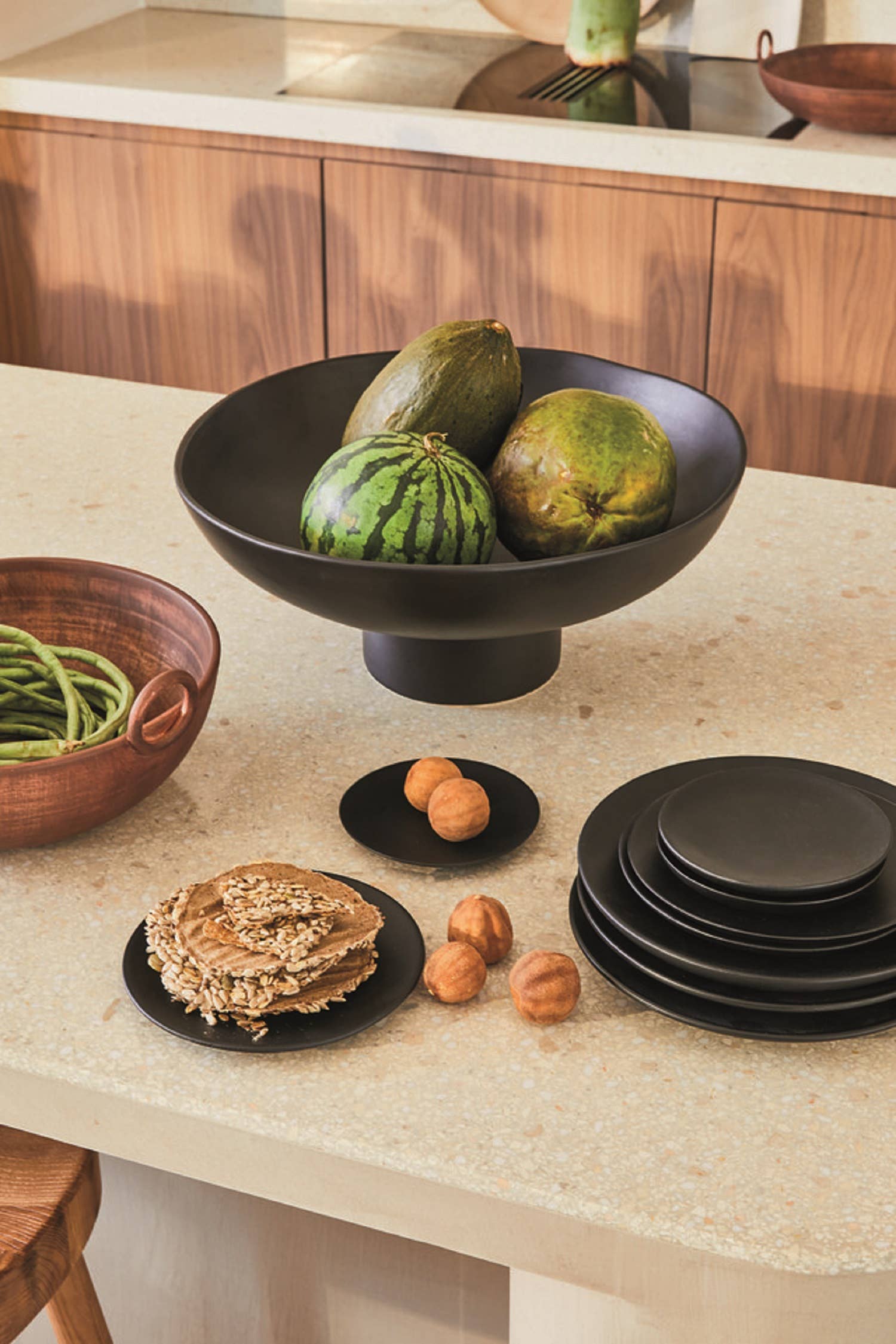 What may appear to be a still life, part of an urban interior, might just come to life with a closer look. With its large dimensions, flowing design and dark shade, Urban Nature Culture’s ceramic Orion bowl is quite the eye catcher. hand-made in Portugal, it’s the reactive glaze that really speaks though. Come closer, and let the many shades of black take you in.