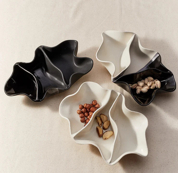 Divide ceramic tray - perfect for organizing jewelry or an artistic expression or a snack filled serving tray. Fill with your favorite dips, jewels, or leave empty as a statement.