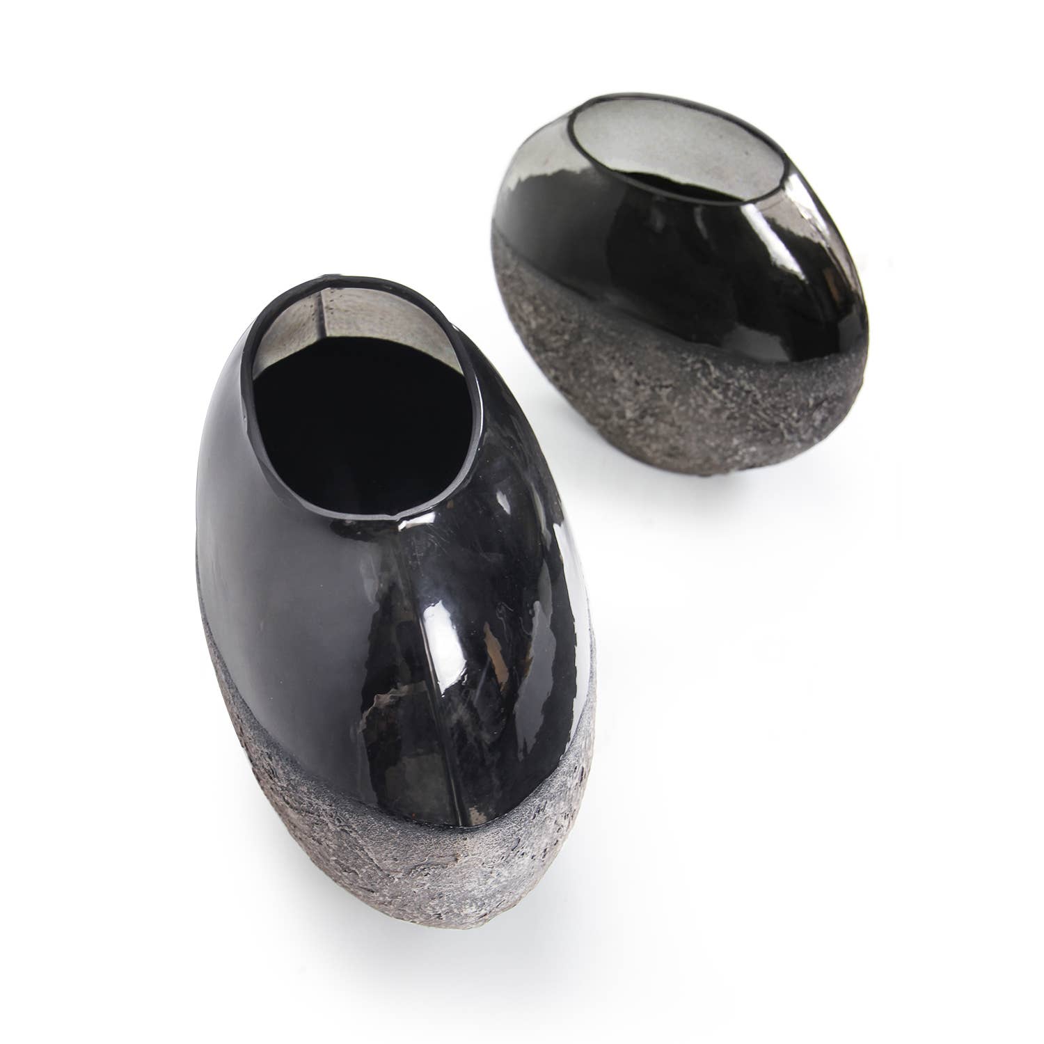 Lunar Decorative Glass Vase: Grey / H-9.25" | D-10.25" X 5"