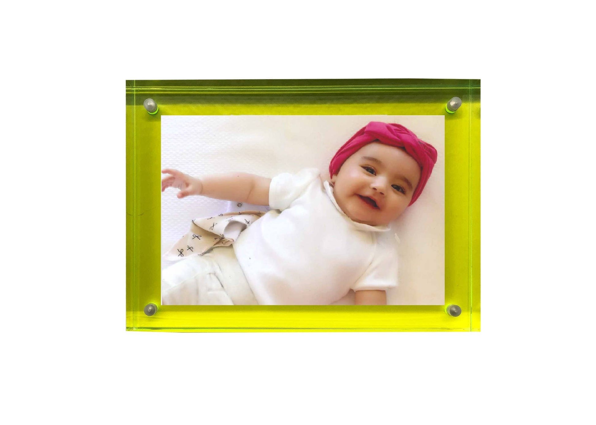 Memorialize your favorite moments in this 5x7 Photo Frame. Made from Lucite, glass looking frame with bright colors