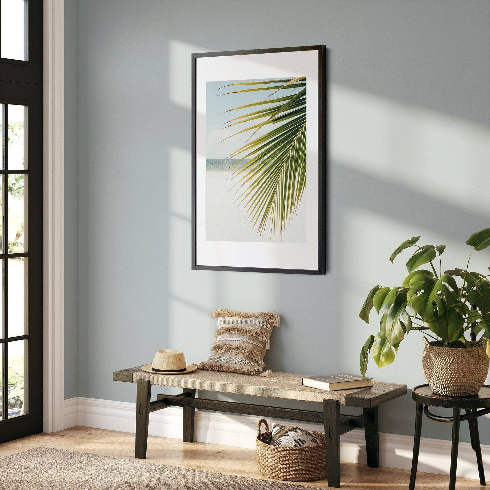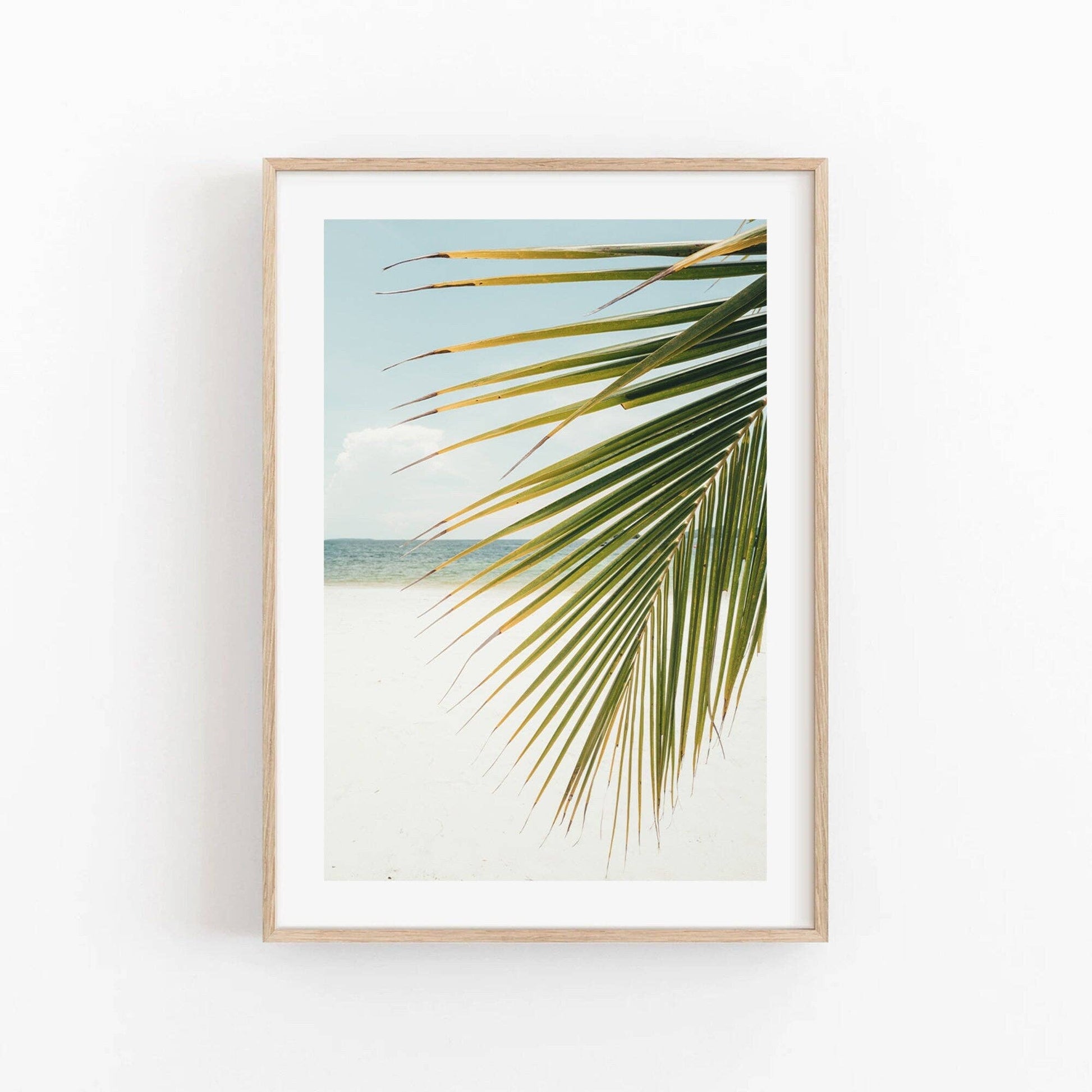 Peaceful photograph of a large palm tree leaf on a tropical island, a testament to the beauty of simplicity.